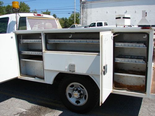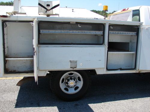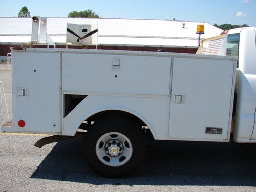 VERY WELL MAINTAINED FLEET UNIT FROM AT&T TELEPHONE IN GEORGIA. TRUE SOUTHERN TRUCK WITH NICE MILES AT 216000. THIS TRUCK HAS A CLEAN UTILITY BED BY ALTEC. THE BED HAS DEEP STORAGE COMPARTMENT IN THE FRONT PASSENGER SIDE COMPARMENT. ALL LATCHES OPEN AND CLOSE PROPERLY. BED FLOOR HAS 2 TIERS FOR STORAGE. THE TRUCK CAB IS IN VERY GOOD CONDITION. THERE IS NO RUST OR BODY DAMAGE. NORMAL COSMETICS THAT INCLUDE SMALL DINGS/DENTS SCRATCHES AND SO FORTH. THE INTERIOR CAB IS IN VERY GOOD CONDITION AND CLEAN IN APPEARANCE. VINYL SEATS WITH RUBBER FLOOR MAT. OPTIONS INCLUDE WORKING CRUISE CONTROL AND COLD AC. THE DRIVE TRAIN IS IN GREAT CONDITON. STRONG RUNNING DURAMAX 6.6L V8 OHV 32V TURBO DIESEL ENGINE. SMOOTH SHIFTING ALLISON HEAVY DUTY AUTOMATIC TRANSMISSION. THIS TRUCK HAS NO CHECK ENGINE LIGHTS AND THERE ARE NO KNOWN MECHANICAL ISSUES. TIRES ARE VERY GOOD AND MATCHED PAIRS. OVERALL IF YOU ARE IN THE MARKET FOR AN AFFORDABLE UTILITY TRUCK YOU WILL NEED TO COME CHECK THIS ONE OUT. 859-588-1485
