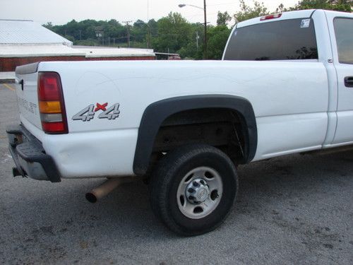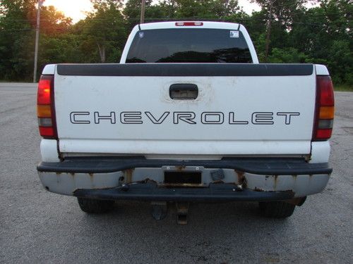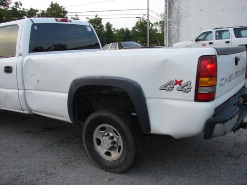 ONLY $3990.00 TO OWN A 2005 CHEVROLET SILVERADO 3500HD SRW 4X4 8 FT BED TRUCK. TRUCK HAS A CLEAN CLEAR TITLE. TRUCK RUNS AND DRIVES FINE. KNOWN ISSUES INCLUDE AN EXHAUST MANIFOLD LEAK ON THE PASSENGER SIDE AND A CHECK ENGINE LIGHT FOR FAULTY 02 SENSOR READING CAUSED BY THE EXHAUST LEAK. ENGINE STARTS EASY. TRANSMISSION SHIFTS OUT VERY WELL. 4X4 WORKS PROPERLY AND IS ELECTRONIC SHIFT. BODY HAS COSMETIC ISSUES AND DAMAGE. DRIVERS SIDE HAS BEEN SWIPED. THERE ARE SCRATCHES ON ALL OF THE BODY PANELS. THE REAR BUMPER HAS RUST BUT THE REST OF THE PANELS APPEAR FINE. TIRES ARE FAIR AND DRIVABLE. THE AC BLOWS COLD. INTERIOR HAS WEAR ASSOCIATED WTIH AGE AND MILES. SEATS HAVE SOME TEARS AND CARPET HAS SOME HOLES. IF YOU ARE LOOKING FOR CHEAP TRUCK THAT RUNS AND DRIVES THEN THIS IS ONE YOU WILL BE HAPPY WITH. CALL 859-588-1485 FOR QUESTIONS.