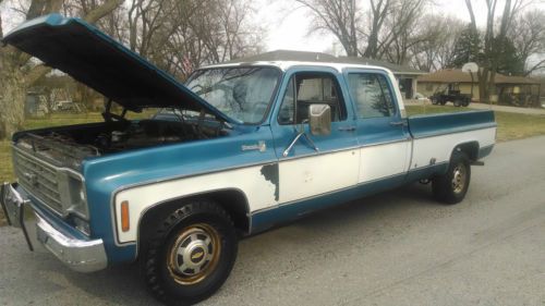 For sale is a very clean chevy crew cab, truck was Ziebart treated new and has very little rust.Truck has a 454 power steering, power brakes, air conditioning, cruise control,factory am/FM/8 track/c/b radio, all interior is in excellent condition, rear glass, 3.73 gear ratio with posi.Truck also has a US Gear Dual Range Auxiliary Transmission that is mounted to the back of the turbo 400 and works perfectly. Please ask any questions, and thanks for looking.