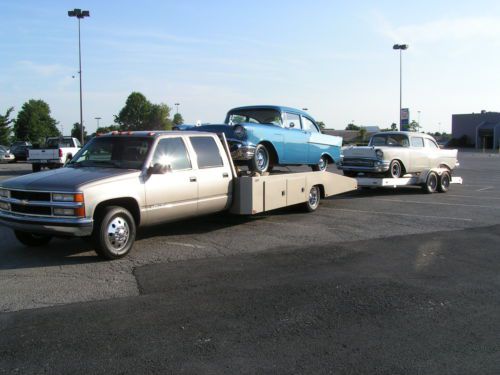 1999 Chevrolet Silverado, Crew Cab with Hodges car hauler bed since new. Always privately owned and seen light use by its owners. 454 cubic inch automatic with 3:73 rear end. I just got back from a 3000 mile trip delivering a car on the way out and picking up a car on the return and I got an honest 12.65 mpg average. The truck needs nothing. Has its own winch that would pull a house off its foundation. I just had the bed sand blasted and painted so the truck looks like new in and out. New aluminum wheels and 6 matching Bridgestone tires. AM/FM, Cassette, CD radio, tilit wheel, door locks and air. Runs and drives great and doesn't use oil. Backup camera. It has brake control and hitch and it hauls a car and tows another on the trailer with ease. Call anytime 217-620-3405