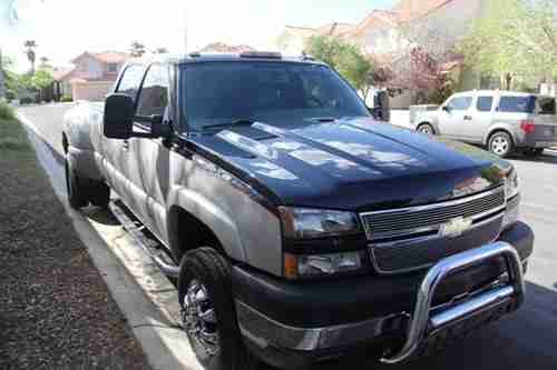 Hello, I bought thit truck new in Oct. 2006 It is a 2007 CHEVY SILVERADO LT. 3500 4+4 DURAMAX DIESEL DUALLY CLASSIC with 109,600 miles. I used this truck to pull a 5th. wheel for work only. Im a independent contractor for liquidation, so I would go on the road for months at a time. I'm not doing this any more now that we just had a baby, so I sold the 5th. wheel now I need to sell this Beautiful truck. In 2008 I put 12k into it, EDGE system, dual ex., AFE air intake, Custom hood, Billit Gril, smoked marker lights, push bar, door handles, Black paint, wheels and tires, I just repalsed rotors, pads and frount tires last week, the truck has heated / power leather, BOSE sound system w/ rear DVD, Running boards, Multi Zone AC, 20k lb. AIRBORN 5th Wheel hook up, 6 CD player, power everything, The service on this truck was always on time and never had any problams with it, EVER !! Its a great truck I wish I dident have to sell it but I just dont need it any more. If you would like to talk to me, please call me anytime @ (702) 281-0577 I live in Las Vegas. buyer is respondsible for shipping or pick up. Thank you..
