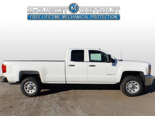 Extended Cab! Call us now! McCluskey Chevrolet's Free Lifetime Mechanical Protection. This 2015 Silverado 3500HD is for Chevrolet enthusiasts looking high and low for that perfect truck. You never know when life is going to throw you a curve, but the advanced braking system will always be there to help stop trouble right in its tracks. It is nicely equipped with features such as Standard Suspension Package, Trailering Equipment, 3-Passenger Front 40/20/40 Split-Bench Seat, 4.10 Rear Axle Ratio, 4-Wheel Disc Brakes, 6 Speakers, ABS brakes, Air Conditioning, AM/FM radio, Bumpers: chrome, Cloth Seat Trim, Delay-off headlights, Driver door bin, Dual front impact airbags, Electronic Stability Control, Front anti-roll bar, Front Center Armrest w/Storage, Front reading lights, Front wheel independent suspension, Fully automatic headlights, Occupant sensing airbag, Overhead console, Passenger cancellable airbag, Passenger door bin, Passenger vanity mirror, Power steering, Power Windows, Power windows, Rear reading lights, Rear step bumper, Speed control, Steering Wheel, Tachometer, Tilt steering wheel, Traction control, Trip computer, Variably intermittent wipers, and Voltmeter.