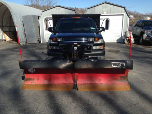 Chevy 3500 Ls 4x4 Allision Duramax Diesel 6.6l Dump Rack Body Western V Plow on 2040-cars