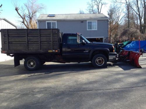 2005 Chevrolet Silverado 3500 LS Automatic 4x4 with Allision transmission. The engine is a 6.6l Duramax Diesel. It's a Dump/Rack Body. It has the LS decor, snow plow and trailer/tow package. Which includes, Western v plow, trailer brake switch and a 2 1/16" ball or use with a pintle hook setup. There is also 4 added back up lights that are on a separate switch. The truck is in overall good shape. It has normal wear and tear for being a work truck. It runs and drives great. Any questions text/call me at 914-804-8886. Thanks.