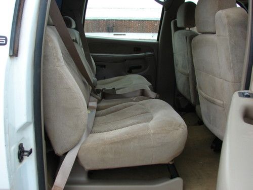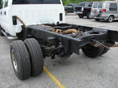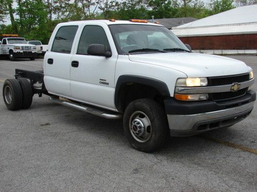 BIG 3500HD 2002 CHEVROLET SILVERADO LS CREW CAB 4X2 DUAL REAR WHEEL TRUCK WITH THE DYNAMIC DUO 6.6 DURAMAX TURBO DIESEL ENGINE AND THE ALLISON 1000 SERIES AUTOMATIC TRANMISSION. THE TRUCK RUNS STRONG NO MECHAINCAL ISSUES AND NO CHECK ENGINE LIGHTS AND IS READY TO GO TO WORK. THE ENGINE STARTS EASY(NO SMOKE AT START UP OR AT IDLE AND HAS LOTS PULLING POWER, THE TRANSMISSION SHIFTS OUT SMOOTHLY IN ALL GEARS. THE INTERIOR LOOKS VERY GOOD FOR A 2002 MODEL. DRIVERS SEATS SHOWS SOME WEAR AND LIGHT SEAM EDGE TEAR ON THE DRIVERS SEAT ENTRANCE EDGE. OTHERWISE SEATS HAVE NO TEARS. ALL OF THE WINDOWS WORK. PASSENGER REAR WINDOW DOES RAISE SLOWER THEN THE REST. EXTERIOR OF TRUCK IS IN GOOD CONDITION. THERE ARE SOME DINGS/DENTS SCRATCHES PAINT CHIPS AND SO FORTH COSMETICS FOUND ON A TRUCK OF THIS AGE. . BOTH REAR CAB POSTS HAVE SOME SMALL DENTS AND SCRATCHES. NO CAB OR BODY RUST. NICE FRAME THAT IS SOLID AND NO ISSUES FROM RUST. THE TRIES ARE STRONG WITH DEEP TREAD AND ALL MATCH. DRIVE TRAIN SHOWS NO FLUID DRIPS WHEN PARKED ON DRY PAVE MENT. THIS TRUCK IS READY FOR THE BED OF YOUR CHOICE. THIS IS A STANDARD 167" WHEEL BASE TRUCK THAT WILL ACCEPT AN 8 FT REGULAR DUALLY TRUCK BED OR OTHER 8 FT DUALLY FLAT TYPE BED OR UTILITY BOX. THESE EARLY DURAMAX' S ARE BECOMING HARDER TO FIND WITH MILES UNDER THE 200,000 RANGE. TRUCK IS READY TO DRIVE TO ANY LOCATION. CALL 859-588-1485 FOR QUESTIONS.