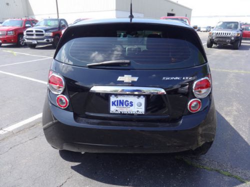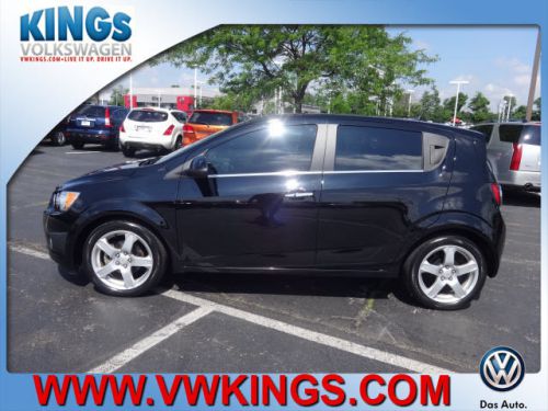LTZ!!! Talk about a deal! Switch to Kings VW! Your quest for a gently used car is over. This superb-looking 2012 Chevrolet Sonic has only had one previous owner, with a great track record and a long life ahead of it. It is nicely equipped with features such as 6 Speakers, ABS brakes, Air Conditioning, Alloy wheels, Brake assist, Bumpers: body-color, CD player, Delay-off headlights, Driver door bin, Driver vanity mirror, Dual front impact airbags, Dual front side impact airbags, Electronic Stability Control, Emergency communication system, Front anti-roll bar, Front Bucket Seats, Front fog lights, Front reading lights, Front wheel independent suspension, Fully automatic headlights, Heated door mirrors, Heated Front Bucket Seats, Heated front seats, Illuminated entry, Knee airbag, Low tire pressure warning, MP3 decoder, Occupant sensing airbag, Outside temperature display, Overhead airbag, Panic alarm, Passenger door bin, Passenger vanity mirror, Perforated Leatherette Seating Surfaces, Power door mirrors, Power steering, Power windows, Radio data system, Radio: AM/FM/CD/MP3/WMA, Rear side impact airbag, Rear window defroster, Rear window wiper, Remote keyless entry, Security system, SIRIUSXM Satellite Radio, Speed control, Split folding rear seat, Spoiler, Sport steering wheel, Steering wheel mounted audio controls, Tachometer, Telescoping steering wheel, Tilt steering wheel, Traction control, Trip computer, and Variably intermittent wipers. Climb into this great one-owner Sonic and you can't help but be impressed by the way that previous owner took care of it. Great vehicles at a fantastic value! ****Cincinnati's World Auto CPO Dealer**** Experience the Kings VW difference! Free Blackbook/KBB online appraisals @www.vwkings.com! Thanks for looking at our vehicle. We look forward to working with you either over the internet, phone or directly in person. Come to our all-new expanded facility in the Kings Auto Mall& have a great car buying experience. We're easy to find and easier to love! Great vehicles at a better value @ Cincinnati's #1 VW World Auto Certified Pre Owned Dealer!