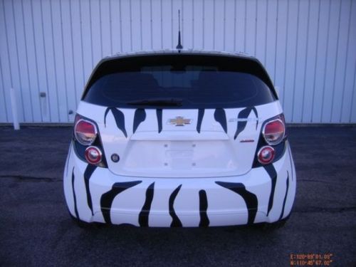 $1,500 rebate is applied to the price. Additional incentives may be applicable. Brand-New! This Sonic customized and ready to roll with 16" Painted Rims, Black Flash Package, Tinted Windows and Zebra Print Decals!! Other great features include Automatic Headlamps, 1.4 Liter Turbo Charged Engine, 6-Speed Automatic with Tap Shift, Heated Mirrors, Ten Airbags, XM Radio, USB Port and Bluetooth. See dealer for details.
