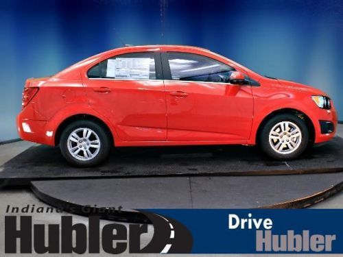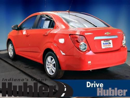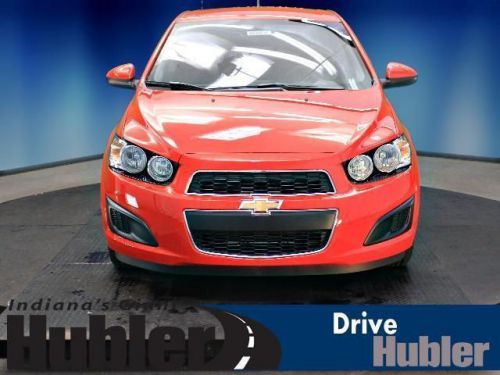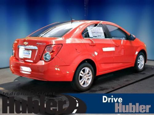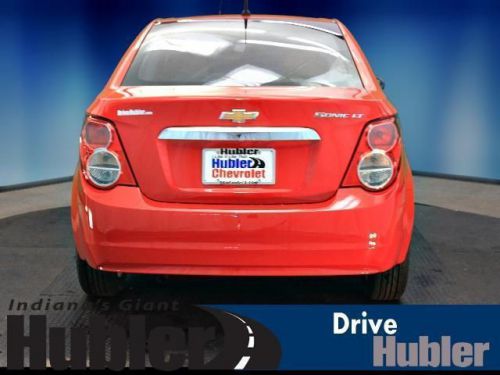 Remote Engine Start, CD Player, 1SD PREFERRED EQUIPMENT GROUP, Alloy Wheels, Overhead Airbag, iPod/MP3 Input. Red Hot exterior and Jet Black/Dark Titanium Premium Cloth interior, LT trim. FUEL EFFICIENT 35 MPG Hwy/25 MPG City! CLICK ME!======KEY FEATURES INCLUDE: Satellite Radio, iPod/MP3 Input, CD Player, Remote Engine Start. MP3 Player, Onboard Communications System, Aluminum Wheels, Keyless Entry, Remote Trunk Release. ======OPTION PACKAGES: 1SD PREFERRED EQUIPMENT GROUP includes Standard Equipment. LT with Red Hot exterior and Jet Black/Dark Titanium Premium Cloth interior features a 4 Cylinder Engine with 138 HP at 6300 RPM*. ======EXPERTS CONCLUDE: The 2014 Chevrolet Sonic is one of our top picks for a subcompact sedan or hatchback thanks to its blend of power, comfort and feature availability. -Edmunds.com. Great Gas Mileage: 35 MPG Hwy. ======WHO WE ARE: After more than 50 years in business, The Hubler Auto Group, through the power of ten central Indiana locations, has literally sold hundreds of thousands of vehicles and is one of the oldest and most prolific auto dealers in the State employing 550 people. The Hubler Auto Group can claim the title for selling more G.M. vehicles in the State of Indiana than any other dealer or dealer group, and has earned the right to brag of having the largest and most loyal customer Horsepower calculations based on trim engine configuration. Fuel economy calculations based on original manufacturer data for trim engine configuration. Please confirm the accuracy of the included equipment by calling us prior to purchase. We may not be the biggest dealer in Indiana - but we have the desire to be the BEST dealer in Indiana. We work hard to find the vehicle to meet your needs and earn your business the right way / YOUR WAY! Please contact our dedicated Internet Customer Care Team at 888-251-4084 for details on the current rates and incentives. We lookforward to hearing from you!!