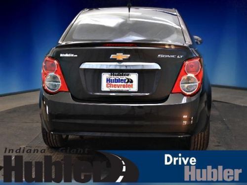 EPA 35 MPG Hwy/25 MPG City! LT trim, Mocha Bronze Metallic exterior and Jet Black/Dark Titanium Premium Cloth interior. Remote Engine Start, CD Player, 1SD PREFERRED EQUIPMENT GROUP, WHEELS AND FOG LAMP PACKAGE, Head Airbag CLICK ME!======KEY FEATURES INCLUDE: Satellite Radio, iPod/MP3 Input, CD Player, Remote Engine Start. MP3 Player, Onboard Communications System, Remote Trunk Release, Keyless Entry, Child Safety Locks. ======OPTION PACKAGES: WHEELS AND FOG LAMP PACKAGE includes (RRV) 16 silver-painted aluminum wheels, (T3U) front fog lamps and (D59) rear spoiler, 1SD PREFERRED EQUIPMENT GROUP includes Standard Equipment. LT with Mocha Bronze Metallic exterior and Jet Black/Dark Titanium Premium Cloth interior features a 4 Cylinder Engine with 138 HP at 6300 RPM*. ======EXPERTS ARE SAYING: The 2014 Chevrolet Sonic is one of our top picks for a subcompact sedan or hatchback thanks to its blend of power, comfort and feature availability. -Edmunds.com. Great Gas Mileage: 35 MPG Hwy. ======WHO WE ARE: After more than 50 years in business, The Hubler Auto Group, through the power of ten central Indiana locations, has literally sold hundreds of thousands of vehicles and is one of the oldest and most prolific auto dealers in the State employing 550 people. The Hubler Auto Group can claim the title for selling more G.M. vehicles in the State of Indiana than any other dealer or dealer group, and has earned the right to brag of having the largest and most loyal customer Horsepower calculations based on trim engine configuration. Fuel economy calculations based on original manufacturer data for trim engine configuration. Please confirm the accuracy of the included equipment by calling us prior to purchase. We may not be the biggest dealer in Indiana - but we have the desire to be the BEST dealer in Indiana. We work hard to find the vehicle to meet your needs and earn your business the right way / YOUR WAY! Please contact our dedicated Internet Customer Care Team at 888-251-4084 for details on the current rates and incentives. We lookforward to hearing from you!!