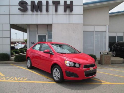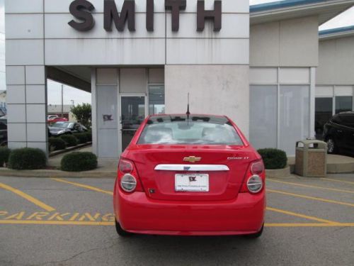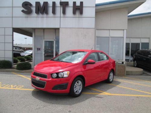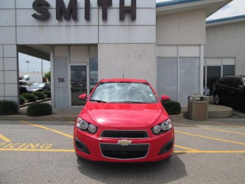 Air Conditioning, mylink, Rear Vision Camera, Rear window defroster, SiriusXM Satellite Radio, and Traction control. Yeah baby! Yes! Yes! Yes! Creampuff! This beautiful 2014 Chevrolet Sonic is not going to disappoint. There you have it, short and sweet! This car is nicely equipped with features such as Air Conditioning, mylink, Rear Vision Camera, Rear window defroster, SiriusXM Satellite Radio, Traction control, 3.47 Axle Ratio, 6 Speakers, ABS brakes, Alloy wheels, Brake assist, Bumpers: body-color, CD player, Delay-off headlights, Deluxe Cloth Seat Trim, Driver door bin, Driver vanity mirror, Dual front impact airbags, Dual front side impact airbags, Electronic Stability Control, Emergency communication system, Front anti-roll bar, Front Bucket Seats, Front reading lights, Front wheel independent suspension, Fully automatic headlights, Heated door mirrors, Illuminated entry, Knee airbag, Low tire pressure warning, MP3 decoder, Occupant sensing airbag, Outside temperature display, Overhead airbag, Panic alarm, Passenger door bin, Passenger vanity mirror, Power door mirrors, Power steering, Power windows, Radio data system, Rear side impact airbag, Remote keyless entry, Security system, Speed control, Split folding rear seat, Sport steering wheel, Steering wheel mounted audio controls, Tachometer, Telescoping steering wheel, Tilt steering wheel, Trip computer, and Variably intermittent wipers. Chevrolet has established itself as a name associated with quality. This Chevrolet Sonic will get you where you need to go for many years to come. Price includes: $500 PRIVATE OFER TO CUSTOMERS WHO CURRENTLY OWN OR LEASE A 1999 OR NEWER NON-GM (I.E., NON-BUICK, CADILLAC, CHEVROLET, GMC, HUMMER, OLDSMOBILE, PONTIAC, OR SATURN) PASSENGER CAR OR LIGHT DUTY TRUCK. , $1,000 - General Motors Bonus Cash Program. Exp. 06/30, $500 - General Motors Consumer Cash Program. Exp. 06/30 Smith Chevrolet Cadillac is located in Fort Smith, AR. We are a full service dealership including New and Pre-Owned cars and trucks, service, parts, and body shop! Call or email our Internet Sales Team and let them tell you about our Market Based Pricing and our Internet specials. www.smithchevyland.com