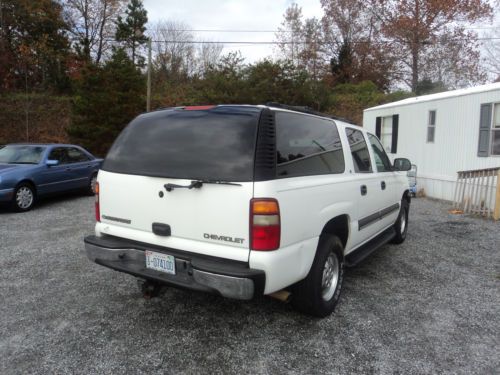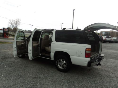 02 Chevrolet Suburban 2wd with leather, captain chairs, thrid row seat, front and rear ac, pw, pl, remote entry, decent tires, runs excellent, transmission shifts smooth, one owner, dvd player with remote, clean inside and out, no known issues, if you have any other questions, you can call me at (828) 381-3641. Autos Plus Sales Hudson, NC Dealer #13374
