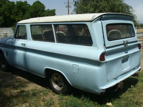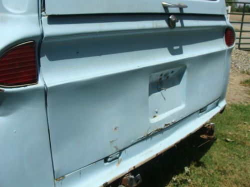 1963 Chevy 2 door Suburban with the desirable tail gate. 1/2 ton with the trailing arm coil springs in rear. Easy to lower. Been in California. Great surf wagon. (Gate goes down, glass part goes up. NOT the 2 rear doors) Bought the truck to restore and take to the beach. Has been stored for 10 years. Got it to fire on start fluid and some gas when we bought it but needs gas tank cleaned, tune-up and brakes repaired. Needs a good all around restoration to make it safe. Great patina. Has some older rust repair but no gaping holes or rotted out sills like you see on many. See the pictures. Has a 283ci and manual 4 speed on the floor. The grill and lights are stored in the back seat area and the chrome bumpers too. All the trim seems there but ask as I am not an expert and the truck is sold as-is. No complaints please. Can store it for 30 days while you find a shipper. Always interested in hearing what you think its worth to you if you just have to own it. California title in-hand. Truck is located in Visalia California $500 paypal in 24 hours. Balance in 3 days. Cash or transfer. Or bank check drawn on a known bank. Pick up the truck after funds clear. NO RESERVE Ebay bidder informs me this is a 1964. This may be so as I know little about these. The title has it as a 1963. |