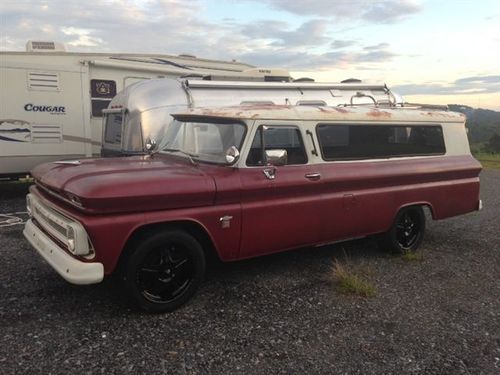 You are bidding on a 1966 C30 long suburban.I have never saw another like it,I have owned a couple of the short one's,but never a long one.This truck is in great condition for its age.There are only a few spots of rust under the hood near the core support about the size of a pea and some surface rust on top but not enough to speak of.The gentle man I got the truck from said the fire dept had this truck put up for many years, that why the truck has very little rust. It has a 350 engine with a 400 turbo transmission and disc brakes on the front and drum on back,AC works great, but there is a lot to cool in this truck.This truck was a C30 and the person that had it before me changed out the rear end to a late model with 5 lug pattern and the front is also a 5 lug Pattern so you wheel choice would be better.Has a new gas tank and fuel pump with headers and new flow master knockoff exhaust system. I have only had it for a short time,but it runs out good.I took it in on trade on a other old truck I had.It may still need some things done to it ,but it seems to checks out well.You will be one of the few that has one like this. Good luck bidding.
