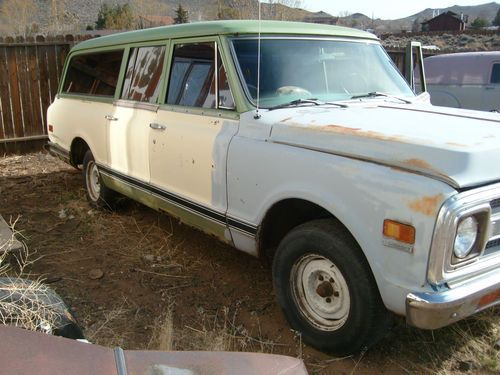 FOR SALE: 1971 CHEVROLET 1/2 TON, C10, 2-WHEEL DRIVE, 3-DOOR, SUBURBAN, MATCHING NUMBER 396 (400) BIG-BLOCK, TURBO-400 TRANS., 12 BOLT POSI REAREND, 5-LUG POWER DISC-BRAKES, P/S, 3RD SEAT, BARN DOORS AND VERY RARE FACTORY BUCKET SEATS, ALL DOCUMENTED ON GLOVE BOX DOOR DATA SHEET. THE ENGINE RAN YEARS AGO, AND HAS NEVER BEEN REBUILT,WHICH IT COULD USE,TRANNY OK, BRAKES STILL WORK. BODY HAS TYPICAL RUST IN ROCKERS AND BEHIND WHEEL WELLS, FLOORS SOLID, EXC. MINOR REPAIR NEEDED IN CORNERS WHERE THEY MEET THE KICK PANEL, ROOF IS VERY NICE, STRAIGHT AND NO ROT. ALL IN ALL, THIS IS A NICE PIECE TO BUILD, NOT TO MENTION THE RARE OPTIONS. ALL GLASS INTACT, ALWAYS CLOSED UP, NO CREATURES LIVING IN IT. IT IS SOLD "AS IS", ANY QUESTIONS PLEASE CALL...BILLY...(775) 677-2438...RENO,NV. PRICE IS $3,500. OUT-OF-STATE, I WILL GIVE YOU AMPLE TIME TO PICK UP. THANKS FOR LOOKING. NOTE; THE GRILL IS WRONG, 71 GETS THE EGG CRATE DESIGN.