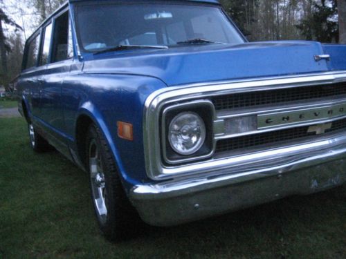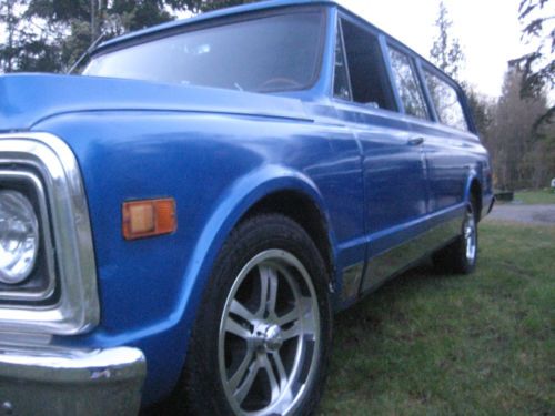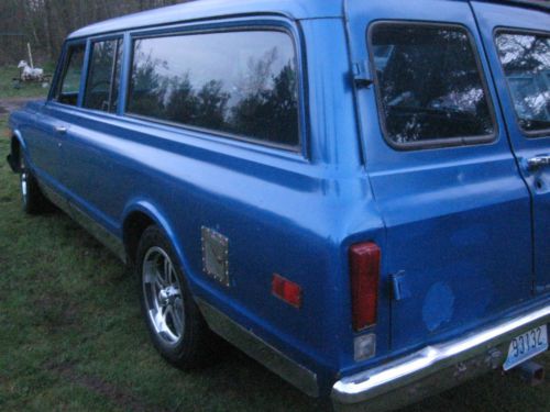 1971 Chevy suburban 2wd 350 motor, automatic transmission, new tires and wheels, silverline exhaust, nice running 350 motor, converted to automatic, good paint with few bad spots(pics show), runs strong and looks great with a'lot of compliments, has 2" lowering kit installed, comes with stock springs as well!Runs strong. Wood floor in the back and barn doors, is also a 3 door. New Xentec lights, and new horn (sounds nice). Don't pass up on this lowered burban!