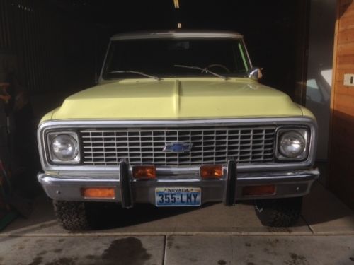 1972 K10 Suburban 4WD. Probably the most original surviving low mileage suburban you will find. Original 81,000 mile four wheel drive. This truck was owned by older gentleman who passed away. Truck is uncut, not lifted, all stock except steering wheel. Column is correct just needs paint. Original motor, transmission etc. Truck has been repainted sometime in it's life. Brand new BF Goodrich a/t tires as the old tire still had 90% of the tread left but were from 1982. Larger aftermarket gas tank, and still has the original suburban chrome gas cap. Just a great surviving 4x4. Huge CB/ radio with large speaker, but metal for radio uncut. Photos tell most of the story. No rust great Arizona truck. Does have holes in hood where hood ornament was, and a plugged hole on drivers side front panel where a large whip antenna must have been.