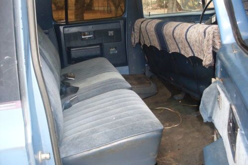 started slipping in third or drive gear. The truck does need attention, oil leaks etc.The electric windows do work including the rear window, but the passenger door needs the switch re-installed. One of the side windows in the rear is cracked, but is still intact. The carpet is old and dirty. There will be no third row seat with it, but you can easily snap one in place if needed. It has the TH400 and is simple