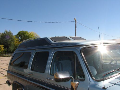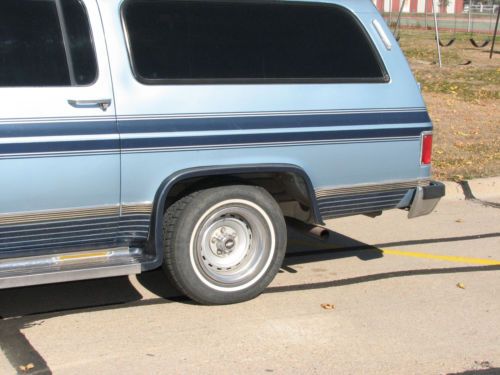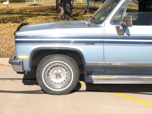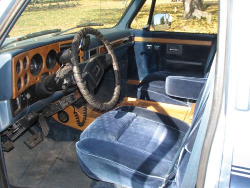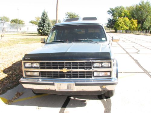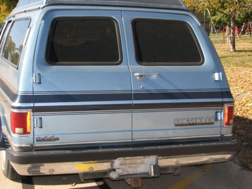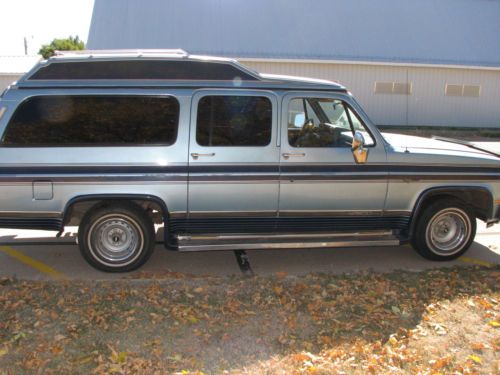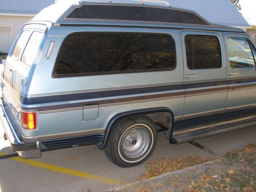 FOR SALE A 1989 CHEVY SUBURBAN CUSTOM CLASSIC WITH A CONVERSION BY VAN HOUSE. HAS 115,000 MILES WITH THE ORIGINAL ENGINE AND TRANSMISSION. THE OUTSIDE IS TWO TONE BLUE AND THE INSIDE IS A BLUE, GOOD USED CONDITION. THE DASH HAS CRACKS,JUST HAPPENED THIS YEAR. PURCHASED LOCAL AROUND A MONTH AGO TO RESELL, THIS SUBURBAN HAS BEEN GARAGED AND ONLY USED FOR TRIPS. TIRES HAVE OVER A YEAR LEFT BEFORE GETTING NEW ONES.. THERE ARE A COUPLE AREAS ON THE OUTSIDE CLEAR COAT THAT IS PEELING, NO RUST, GREAT VEHICLE FOR TRAVELING,WILL DELIVER IN THE SURROUNDING AREAS FOR A FEE, CAN WORK THAT OUT. HAS SMALL TV, HAS RADAR DETECTOR,CB RADIO. PLEASE FEEL FREE TO CONTACT FOR ANY ADDITIONAL INFORMATION.