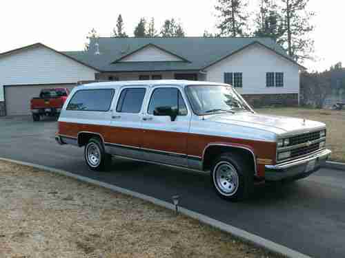 HERE WE HAVE A 1990 CHEVROLET SILVERADO SUBURBAN THAT IS ALL ORIGINAL WHIT VERY LOW MILES THE TRUCK HAS ALL THE POWER OPTIONS YOU COULD GET IN 1990 IT HAS A 350 V8 AUTO THAT RUN'S LIKE IT DID IN 1990 WELL CARE FOR SUV ALWAYS GARAGE KEPT ONLY HAS 87K ORIGINAL MILES THE TRUCK IS ALL ORIGINAL WITH THE EXCEPTION OF A LITTLE PAINT WORK THAT WAS DONE WHEN IT WAS 7 MONTHS OLD AT THE DEALERSHIP IT WAS PURCHASED AT NEW THE ORIGINAL TIRES WERE JUST PUT BACK ON LAST WEEK THEY ARE LIKE NEW THE INTERIOR GLOWS LIKE NEW STILL AND DOSE THE TRUCK THE FRONT AND REAR A/C WORKS GREAT YOU JUST DON'T SEE THESE OLD SUBURBAN LIKE THIS ONE ANYMORE IF YOU HAVE ANY QUESTIONS PLZ CALL ME UP I DON'T E' MILE VERY MUCH SO IF YOU HAVE ANY ? JUST CALL AND I WILL ANSWER ANY ? YOU MAY HAVE THE BUYER IS RESPONSIBLE FOR PICKUP AND DELIVERY A $500 DEPOSIT IS DUE WITHIN 24 HOURS OF THE END OF THE ACTION AND THE FULL PAYMENT IS DUE WITHIN 5 BUSINESS DAY AND THANKS FOR LOOKING GOOD LUCK BIDDING CALL 509-720-1141 ASK FOR ERIC