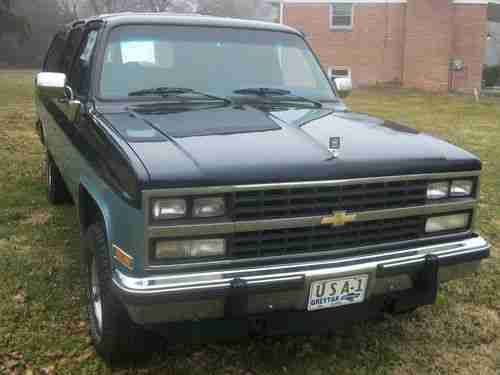 For Sale: 1991 Chevrolet V1500 Suburban 4x4. Truck is in good shape. milage is approx. 155,000. Engine runs strong, transmission has no issues, 4 wheel drive works, tires approx 70% tread life left, Brakes are good, body is in good shape. Interior has 3 rows of seating, front bucket seats with console, has tilt steering wheel, cruise control, power windows & locks. Items that it needs: left front exhaust pipe gasket and a headliner. I have owned vehicle for 3 months, just purchased a new Suburban so I do not need 2. Vehicle has just passed inspection in Delaware - good for a year.