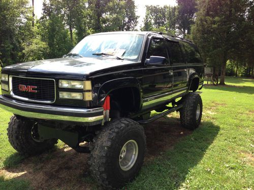I have here a good condition 1992 Chevy Suburban 4x4 (miles 207390) with 18inches of lift setting on brand new 38.5'' Super swamper tsl's. Truck runs great and drives pretty good, shifts out great(tranny has mild shift kit). Truck has the TBI 5.7 sbc with 80xxxx miles on it. Body is in good shape no major dents or scratches, few little dings (its 21years old so don't expect a mint truck). The front pumkin is brand new in the truck. Truck also has Smitty Built nerfbars. All the windows and doors work as should with the exception that the back hatch latch is broke.Truck has had the newer GMC grill put in it.As in pics the dash has a few cracks but other then that interior is in good shape. Truck has been on road driving(very clean underneath).