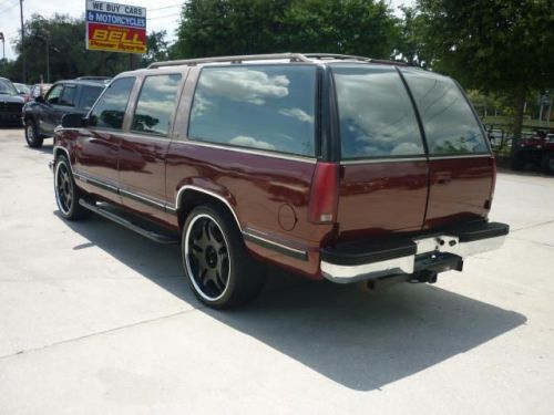Visit our website http://www.richardbellautosales.com/ for more information and photos on this or any of our other vehicles or call us today for a test drive at 888-517-4373. You are looking at an 1994 Chevrolet Suburban c1500. This one is decked out with 24 inch wheels and custom paint. It runs and drives good. All the windows work and it has a nice aftermarket CD player. The ac needs a little work but it drives good. Shipping to your door is available. All Trades Considered including Cars/Trucks/Vans/Motorcycles/ATV's and more! Financing Available! Cash Customers Welcome! Call 888-517-4373 for our internet special! Visit our website http://www.richardbellautosales.com/ for more information and photos on this or any of our other vehicles or call us today for a test drive at 888-517-4373. Shipping to your door is available. All Trades Considered including Cars/Trucks/Vans/Motorcycles/ATV's and more! Cash Customers Welcome! Call 888-517-4373 for our internet special! Visit our website http://www.richardbellautosales.com/ for more information and photos on this or any of our other vehicles or call us today for a test drive at 888-517-4373. Shipping to your door is available. All Trades Considered including Cars/Trucks/Vans/Motorcycles/ATV's and more! Cash Customers Welcome! Call 888-517-4373 for our internet special! Please call 888-517-4373 today!