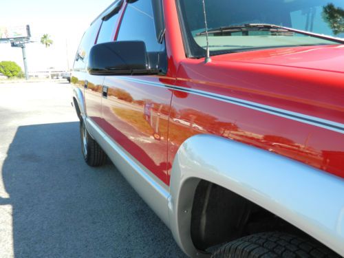 Billy Z Restorations is offering this great suburban for sale. We have owned this truck for sometime now. We used it to run errands around the area. We took it in on a partial payment towards one of our classic Camaro's.In the past 2 months we replaced the battery, carpet, tires and brakes. We painted the fender flares to match. This truck runs 100% air is cold heat is hot and the 4wd works as it should. The exterior is perfect and the leather inside is in great shape for the age with no major rips or tears. Has rear air and 3rd row seats. All windows, locks, lights and gauges all work as they should also. You could fly in and drive this truck anywhere with no worries. Any questions feel free to contact me Bill 321-695-3740 thanks and good luck.