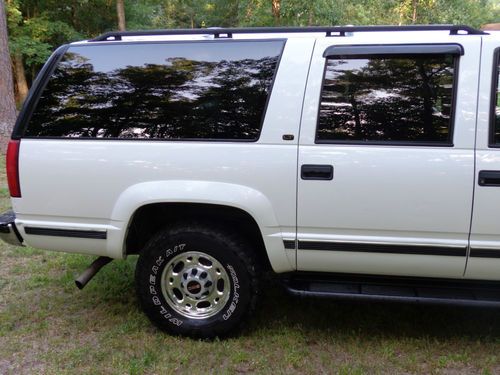 I have a 1999 K 2500 Suburban for sale. It is 4WD and is fully loaded except for a sunroof. The suburban has the 454 7.4L vortec with a 4L80 transmission 9.25 front axle and 10 1/2 rear axle. IT does have the G80 option code for the limited slip rear. And has 3.73 gears. The motor puts out 300hp and 410 ft lbs torque. It has heated mirrors and seats. Front and rear AC and heat. Third row seating and leather interior. The interior is in good shape, the drivers seat has a tear on the edge. But it is not bad and is normal for these trucks. All the rear seating is almost perfect. It has factory tinted windows, heavy duty towing package, Auto 4WD with selectable 4 HI, 4 Low, and 2 HI. This truck was previously owned by a GM tech, and i have owned it and am also a GM tech. It has been very well taken care of. The mileage is 156,375. The truck runs great and is very dependable. If something had a problem it was fixed. Here is a list of things that were just recently replaced in the last year.