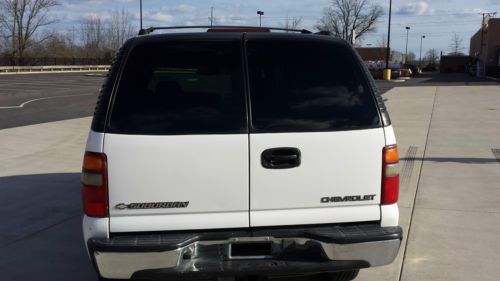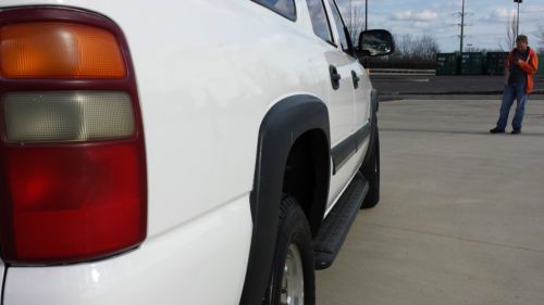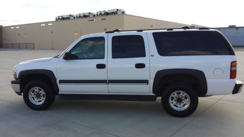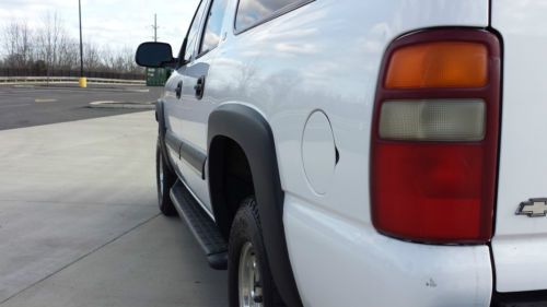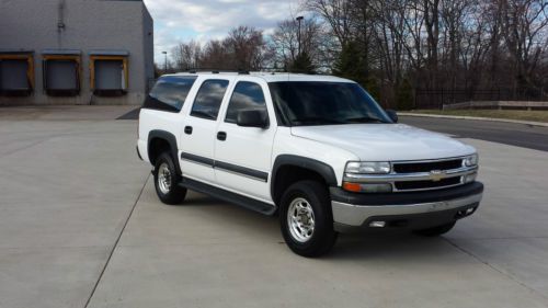 up for sale is this 2002 chevy 2500 3/4 ton suburban 4x4. this truck is was owned and operated by a former government agency ,it has been maintained and serviced regularly by them ... the truck is completely rust free and is good shape all around , there are some scratches and dings and some wear but overall this truck is sound and looks good . the outside is very decent and clean it has a rear class III or IV hitch with the factory attached light plug and the option for the plug and play brake controller under the dash... the tires are about 85% all the way around, all of the vehicles windows are tinted given the nature of its duties .. all the body panels and trim panels are intact and show no signs of major damage ... as for the drive line , the engine runs smooth with no idiot lights lit ,and the transmission performs as it should with no slips or noises in or out of 4x4 ,all selections of 4x4 work as they should including low range... also the tow haul option on the trans. functions as it should .. i do not believe this vehicle has ever towed anything of weight ,and there's no wear on the hitch . as for the interior is is clean , the dash is in good shape, there are no holes from equipment ,and no damage to any of the controls or components .. there is some visible wear in the rear cargo area but its minor scratches and scrapes,otherwise the interior is good.. there is a rear seat available,but not included because the truck did not come with one ... please keep in mind this is a strong running and decent looking truck ,however that doesn't mean its brand new so please view all the photos for your satisfaction... if i have missed anything or you may have questions please feel free to call me for the quickest response @267-377-7605.. this will be a bid auction with a buy it now option ,if you have a feedback of less then 2 i will cancel your bid unless you have confirmed with me via phone first ... these trucks hold there value well and for the age the miles are rather decent so please consider when bidding .. good luck bidders and buyers and thank you for your interest .....