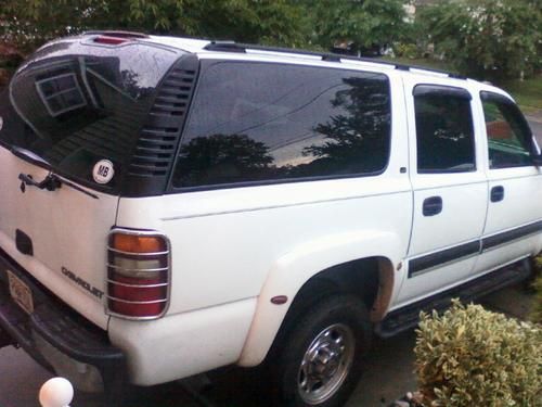 2003 CHEVY SUBURBAN 4X4 2500 W/QUAD STEERING 166,000 MILES WITH A $50 TRANSFERABLE WARRANTY UP TO 216,998 MILES OR 2 / 2016 CHEVY ACCEPTS THE WARRANTY JUST CHANGED FUEL PUMP,ALSO FRONT SHOCKS AT $900.00. has good tires all around. just put new push bar on with halogen driving lights. HAS TOWING HITCH WITH THE SEVEN PIN CONNECTOR. ANY QUESTIONS CALL KARL AT 908-565-0714. I BOUGHT THIS SUBURBAN NEW IN 03 SO 1 OWNER CLEAN TITLE WITH NO ACCIDENTS AND A NON SMOKER TRUCK.