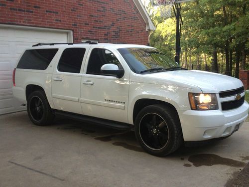 2007 Suburban LT, 2WD, Leather, 22 inch black wheels, 50% tread left, rare seating for 8, runs great, one owner, all service done, recent brakes and shocks. The typical tire pressure light is on and the cruise control stop working. DVD player. White with tan leather. A small dent on hood and normal wear. New OEM carpet installed in passenger area last month. Pretty clean for that 193K miles (mostly highway). The vehicle is for sale locally and seller has right to cancel auction. Call or text 214-601-0031 with any questions. Will ship.