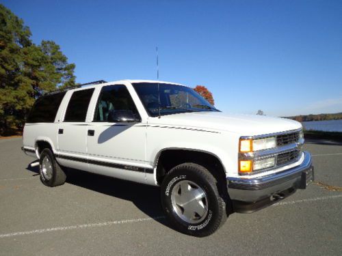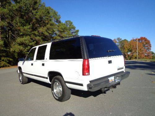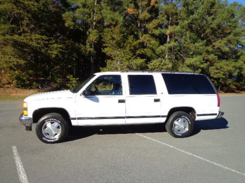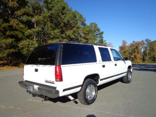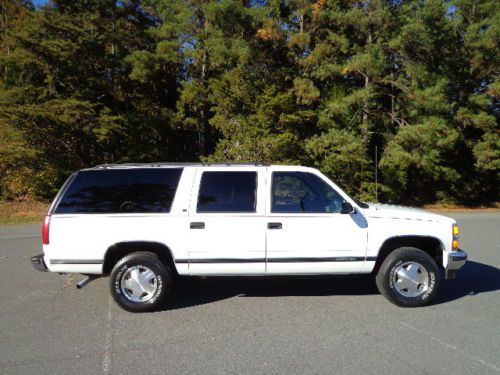 This Suburban is in unbelievable shape for it's age. It was bought new at the local dealership in N.C. and recently traded in. It has the 3rd row seat (8 passenger capacity), front & rear A/C and heat, all power accessories, locking rear differential, HD towing pkg and the Michelin tires are better than 50%. We just did some extensive maintenance including replacing the front pump seal in the transmission, rear main seal in engine, replaced the oil pan gasket, serviced transfer case and transmission (old fluid was clean and clear of any metal shavings), replaced solenoid for 4X4 and the serpentine belt and pulley. This truck drives like new and you wouldn't hesitate to take it on any extended trip. Visit our website at carolinaclassicautos.com or call 704-579-7435.