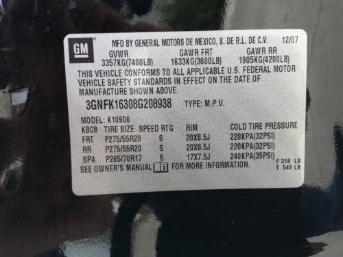 Very clean and well maintained 2008 Chevrolet LTZ Suburban 4WD. This SUV is fully loaded with every factory installed option including navigation, OnStar, DVD Entertainment, Bose speaker system, power sunroof, power folding mirrors, power folding middle seats, rear bucket seats (for total seating for 6), self-leveling rear suspension, power rear hatch and more. Smoker free. This is our 3rd vehicle which was purchased preowned in March of 2011. We use it to on weekends and road trips to move our family of 6. After updating company vehicles in April to another SUV we have driven the Suburban less than 1,500 miles over the past 6 months and have decided it's time to sell. We will miss the cargo and cabin space, smooth ride and good looks! We have it serviced every 3,000 miles at the local Chevy dealer and it has always been garaged since we purchased. The following information is factory specs: