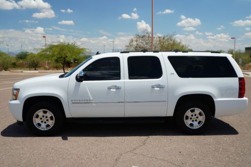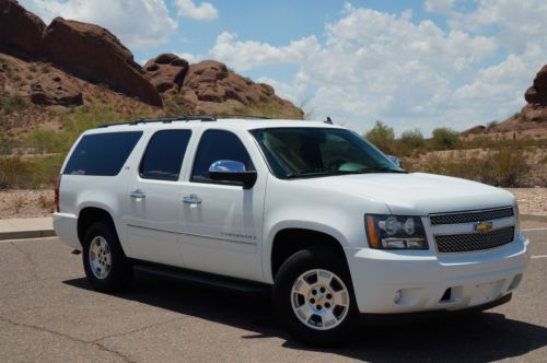 2009 CHEVROLET SUBURBAN 1500 LTZ 4X4!!! WITH 96K ORIGINAL MILES!! FULLY LOADED WITH A CLEAN CARFAX!! AND CLEAN AUTOCHECK!! NO ACCIDENTS!! ARIZONA SUV WITH ZERO RUST!! 2 OWNERS. NEW GOODYEAR WRANGLER TIRES WITH 17INCH ALLOY WHEELS, 4 CAPTAIN POWER LEATHER SEATS WITH AC AND HEAT! WOODTRIM, NAVIGATION/ ONSTAR/ BOSE SURROUND SOUND,DUAL CLIMATE CONTROL AND REAR AC! DVD PLAYER WITH USB-SD CARD HOOK- UP. PARKING SENSORS AND REAR BACK UP CAMERA, POWER MOONROOF, POWER REAR SEATS AND ALSO HEATED REAR SEATS, WEATHERTECH ARIZONA CUSTOM WINTER CHILD PROOF MATS!! SUPER CLEAN INSIDE AND OUT! SIDE MIRRORS ALERT CARS IN BLIND SPOT! 5.3L MOTOR RUNS GREAT! CRUISE CONTROL, ADJUSTABLE PEDALS, ADJUSTABLE TOW PACKAGE WITH SENSORS, RUNS AND DRIVES AWESOME!PLEASE TAKE YOUR TIME AND LOOK AND MY PICTURES AND 100% POSITIVE FEEDBACK!! CALL MIKEY @ 602-312-9426 ON ALL OFFERS OR QUESTIONS! AND LETS KEEP EBAY A FUN AND SAFE PLACE TO DO BUSINESS!!:)>please scroll down below exterior pictures to see interior pictures.