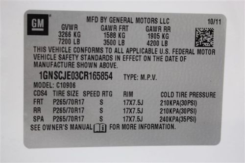 2012 Lt Suv 5.3l Leather Cd Locking/limited Slip Differential Rear Wheel Drive on 2040-cars