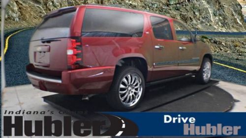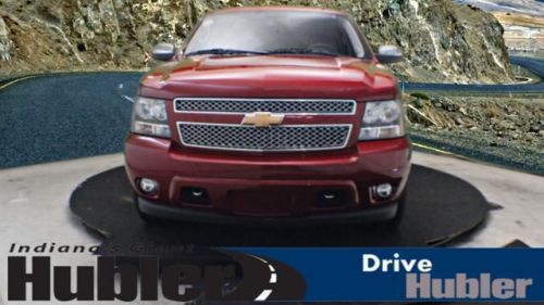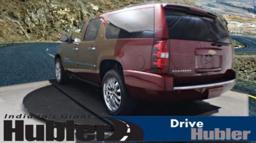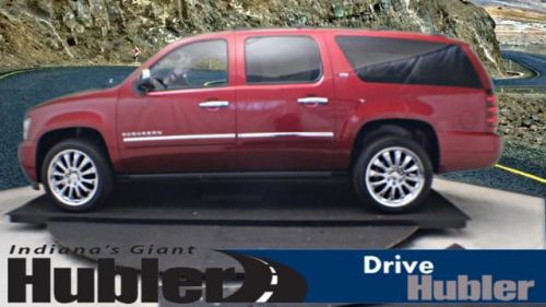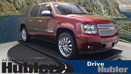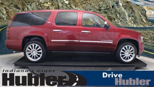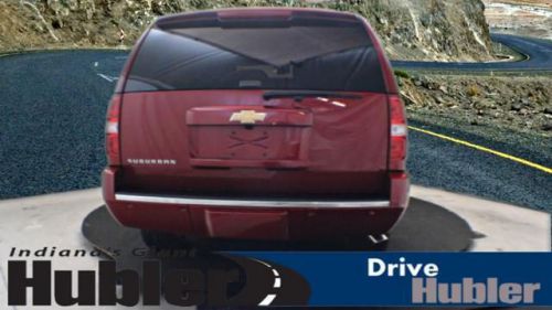 LTZ trim. CARFAX 1-Owner, Excellent Condition. WAS $55,950. Nav System, Third Row Seat, Heated Leather Seats, 4x4, Power Liftgate, Rear Air, Aluminum Wheels, Hitch, Head Airbag, Quad Bucket Seats, Non-Smoker vehicle. READ MORE!======KEY FEATURES INCLUDE: Leather Seats, Third Row Seat, Navigation, Quad Bucket Seats, Power Liftgate, Rear Air, Heated Driver Seat, Heated Rear Seat, Cooled Driver Seat, Back-Up Camera, Running Boards, Flex Fuel, Premium Sound System, Satellite Radio, iPod/MP3 Input. MP3 Player, Rear Seat Audio Controls, 4x4, Onboard Communications System, Aluminum Wheels. LTZ with Crystal Red Tintcoat exterior and Ebony interior features a 8 Cylinder Engine with 320 HP at 5400 RPM*. Non-Smoker vehicle. ======EXPERTS REPORT: CarAndDriver.com's review says Big-SUV shoppers love the Suburban for its blend of pickup-truck capability and vanlike passenger-hauling utility.. ======EXCELLENT VALUE: Was $55, 950. ======BUY FROM AN AWARD WINNING DEALER: The Hubler Auto Group, one of the state's largest employers, has served hundreds of thousands of Hoosiers in our 60 years, and we look forward to serving you!Hubler Ford is conveniently located just off of I-74, Exit 116, in Shelbyville Indiana. We are just 21 minutes east of Indianapolis on I-74, 16 minutes south of Greenfield, and 21 minutes west of Greensburg, and 30 minutes north of Columbus. Pricing analysis performed on 6/9/2014. Horsepower calculations based on trim engine configuration. Please confirm the accuracy of the included equipment by calling us prior to purchase. The Hubler Ford team would like to invite you take advantage of our special vehicle offers, and show you our complete line of inventory. We can help you find exactly what you are looking for. We know your time is valuable. So please contact our team today for information on the vehicle you re interested in or give us call today to schedule your next test drive.
