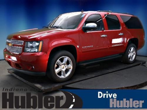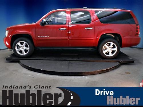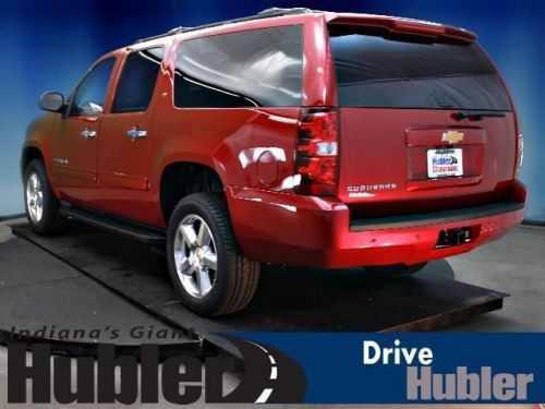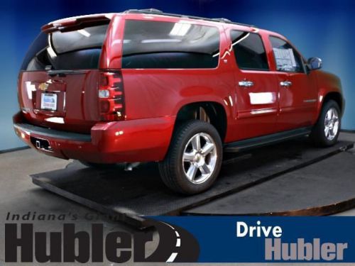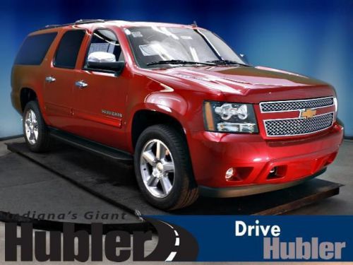 Third Row Seat, Heated Leather Seats, Head Airbag, Four Wheel Drive, Rear A/C, ALL-STAR EDITION, ENTERTAINMENT SYSTEM, REAR SEAT DVD P... LT PREFERRED EQUIPMENT GROUP. LT trim, CRYSTAL RED TINTCOAT exterior and EBONY interior. CLICK ME!======KEY FEATURES INCLUDE: Leather Seats, 3rd Row Seat, Four Wheel Drive, Rear A/C, Heated Front Seat(s), Back-Up Camera, Running Boards/Side Steps, Flex Fuel Capability, Premium Sound System, Telematics, Tow Hitch, Remote Engine Start, Multi-Zone A/C. Rear Seat Audio Controls, Privacy Glass, Keyless Entry, Steering Wheel Audio Controls, Stability Control. ======OPTION PACKAGES: ALL-STAR EDITION includes (DL3) outside heated power-adjustable, power-folding and driverside auto-dimming mirrors, additional 9 months of SiriusXM Radio service, (RCS) 4 - 20 x 8.5 (50.8 cm x 21.6 cm) polished aluminum wheels, (K5L) Heavy-Duty Trailering Package, chrome door handles, (V22) bright, ENTERTAINMENT SYSTEM, REAR SEAT DVD PLAYER with remote control, overhead display, 2 sets of 2-channel wireless infrared headphones and auxiliary audio/video input jacks, SUNROOF, POWER, TILT-SLIDING with express-open and close and wind deflector, LPO, ALL-WEATHER FLOOR MATS, FIRST AND SECOND ROW, LT PREFERRED EQUIPMENT GROUP Includes Standard Equipment, AUDIO SYSTEM, AM/FM STEREO WITH MP3 COMPATIBLE CD/DVD PLAYER seek-and-scan, digital clock, auto-tone control, Radio Data System (RDS), speed-compensated volume, TheftLock and USB port. LT with CRYSTAL RED TINTCOAT exterior and EBONY interior features a 8 Cylinder Engine with 320 HP at 5400 RPM*. ======MORE ABOUT US: After more than 50 years in business, The Hubler Auto Group, through the power of ten central Indiana locations Horsepower calculations based on trim engine configuration. Please confirm the accuracy of the included equipment by calling us prior to purchase. FREE Window Tint OR Unlimited 1 Year CarWash Pass with any vehicle purchase.* Central Indiana's LARGEST Chevy Dealer! We have great finance rates and rebate incentives available on our new vehicle inventory! Call us today for the details at 866-856-4211. Our Internet Customer Care Team is on-hand to take your call! *Some restrictions may apply. See dealer for details.
