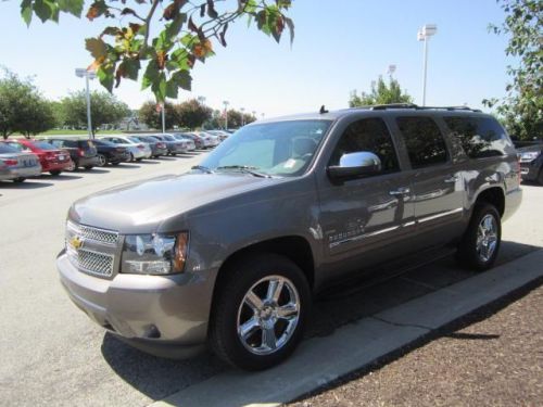 Suburban 1500 LTZ, GM Certified, 4WD, DVD / Rear Seat Entertainment**, GPS / Navigation**, and Moonroof / Sunroof**. Spotless One-Owner! Stop clicking the mouse because this attractive 2014 Chevrolet Suburban 1500 is the one-owner SUV you've been thirsting for. It is nicely equipped with features such as Autoride Suspension Package (Automatic Air Level Control), Suburban 1500 LTZ, GM Certified, 4WD, DVD / Rear Seat Entertainment**, GPS / Navigation**, Moonroof / Sunroof**, 10 Speakers, 12-Way Power Driver Seat Adjuster, 2nd Row Power Seat Release Only, 2nd Row Reclining Leather-Appointed Bucket Seats, 3.08 Rear Axle Ratio, 3rd row seats: split-bench, 4-Wheel Disc Brakes, 6-Way Power Front Passenger Seat Adjuster, ABS brakes, Adjustable pedals, Air Conditioning, AM/FM Stereo w/CD/MP3/Navigation, Auto-dimming door mirrors, Auto-Dimming Inside Rear-View Mirror, Auto-dimming Rear-View mirror, Auto-leveling suspension, Automatic temperature control, Blind spot sensor, Bodyside moldings, Bose Centerpoint Surround Audio System Feature, Bumpers: body-color, CD player, Chrome Recovery Hooks, Color-Keyed Rear Fascia w/Chrome Strip, Custom Perforated Leather-Appointed Seat Trim, Delay-off headlights, Driver door bin, Driver vanity mirror, Dual front impact airbags, Dual front side impact airbags, Electronic Stability Control, Emergency communication system, Front anti-roll bar, Front Bucket Seats, Front Center Armrest, Front dual zone A/C, Front fog lights, Front Halogen Fog Lamps, Front reading lights, Front wheel independent suspension, Fully automatic headlights, Garage door transmitter, Heated & Cooled Driver & Front Passenger Seats, Heated 2nd Row Seats, Heated door mirrors, Heated Front Bucket Seats, Heated front seats, Heated rear seats, Heated steering wheel, Heavy-Duty Locking Rear Differential, Illuminated entry, Leather steering wheel, Low tire pressure warning, Memory seat, MP3 decoder, Navigation System, Occupant sensing airbag, Outside temperature display, Overhe