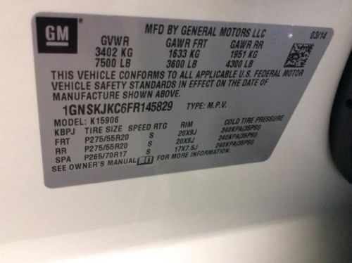 VIN (Vehicle Identification Number): 1GNSKJKC6FR145829