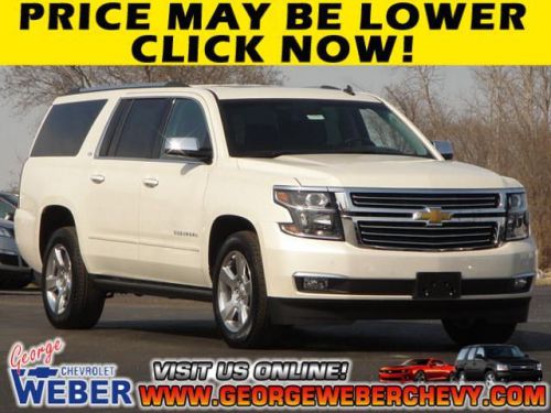 PRICE MAY BE EVEN LOWER THAN SHOWN! TEXT Price to 50123 - CLICK Get A Quote - CLICK Chat Live Now - or CALL NOW for YOUR EXCLUSIVE INTERNET PRICE! We are minutes from St. Louis & the JB Bridge - Visit GeorgeWeberChevy.com Offer expires SOON! ======KEY FEATURES INCLUDE: Leather Seats, Third Row Seat, 4x4, Quad Bucket Seats, Rear Air, Heated Driver Seat, Heated Rear Seat, Cooled Driver Seat, Cooled Rear Seat, Back-Up Camera, Premium Sound System, Onboard Communications System, Trailer Hitch, Aluminum Wheels, Remote Engine Start. Keyless Entry, Steering Wheel Controls, Alarm, Heated Mirrors, Electronic Stability Control. ======OPTION PACKAGES: SUN, ENTERTAINMENT AND DESTINATIONS PACKAGE includes additional 9 months of SiriusXM Radio and NavTraffic service, (CF5) power sunroof, (U42) rear seat DVD entertainment system and (IO6) Chevrolet MyLink radio with navigation, ASSIST STEPS, POWER-RETRACTABLE WITH CHROME ACCENT STRIP AND PERIMETER LIGHTING, ADAPTIVE CRUISE CONTROL: with Crash Imminent Braking, sophisticated radar transceiver automatically adjusts speed to maintain preset following distance, ENTERTAINMENT SYSTEM, REAR SEAT, BLU-RAY/DVD with remote control, overhead display LTZ with White Diamond Tricoat exterior and Leather, Jet Black, Heat & Cooled ====== DRIVE WITH CONFIDENCE: Coast-to-Coast piece of mind warranty coverage! 3-Year/36, 000 Mile Bumper-to-Bumper Warranty, 5-Year/100, 000 Mile Powertrain Limited Warranty, 5-Year/100, 000 Mile 24/7 Roadside Assistance, Courtesy Transportation, & 2-Year/24, 000 Mile Oil Change & Tire Rotation Program. Horsepower calculations based on trim engine configuration. Please confirm the accuracy of the included equipment by calling us prior to purchase. George Weber Chevrolet is your St. Louis Chevrolet Dealership for over 110 years! We have over 2,400 New & Pre-owned cars, trucks, & SUV's to choose from and will do whatever it takes to give you the best price and "the best car buying experience" EVER! We are only minutes across the JB Bridge on Highway 255 in Columbia Illinois. CLICK or CALL TODAY