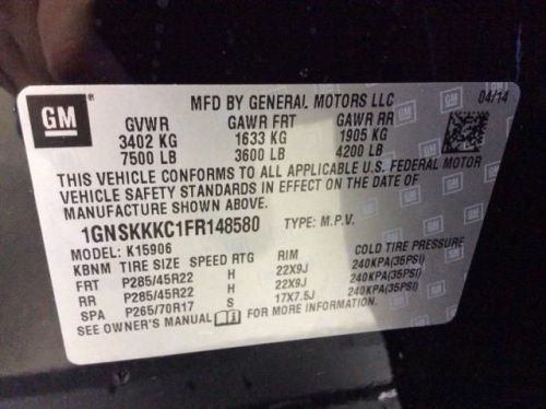 VIN (Vehicle Identification Number): 1GNSKKKC1FR148580
