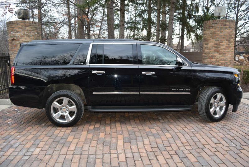 SHARP BLACK EXTERIOR matched with a BLACK(HEATED-COOLED/FRONT) LEATHER interior 2015 CHEVROLET SUBURBAN 4WD LT-EDITION. 4X4(FOUR WHEEL DRIVE). 5.3 Liter V8 naturally aspirated engine( A TRUE GM WORKHORSE). SMOOTH 6 Speed automatic transmission for maximum performance and added power. Lots and lots of power from this engine. NAVIGATION SYSTEM with pinpoint map accuracy directions for go anywhere driving. LANE DEPARTURE SYSTEM. COLLISION ALERT SYSTEM. HEATED SIDE MIRRORS. BLIS SYSTEM/BLIND SPOT ALERT SYSTEM. POWER OPERATED SUNROOF WITH SHADE OPTION. HOME LINK GARAGE OPENER. FACTORY RUNNING BOARDS. POWER OUTLETS. Traction control. LED LIGHTS. FOG LIGHTS. Sirius/XM satellite radio. DUAL power leather seats for both passenger and driver. MEMORY DRIVER SEAT SETTING. PUSH BUTTON START ON/OFF. FRONT HEATED SEATS. FRONT COOLED SEATS. MID ROW POWER FOLDING SEATS. MID ROW CAPTAIN CHAIRS(HARD TO FIND). THIRD ROW POWER FOLDING SEATS SMART ENTRY SYSTEM(SENSORS ON EACH DOOR HANDLE THAT RECOGNIZES THE KEY FOB ON YOU AND IF YOU TOUCH THE DOOR HANDLE,IT UNLOCKS AUTOMATICALLY//NEAT FEATURE ON ALL 4 DOORS). POWER REAR TAILGATE(OPERATED FROM FRONT/REAR/REMOTE ). rear climate control. premium surround-sound audio system(BOSE). REAR ELECTRONIC TOW PACKAGE. DUAL(2) FACTORY REAR DVD (IN ROOF)entertainment systems which is great for entertaining the little ones. REAR VIEW CAMERA which display live video feed of vehicle while in reverse mode. (LANE CHANGE ALERT/IN DASH AND VIBRATING SEATS) FACTORY REMOTE STARTER. AFTER MARKET CHROME COVER DOOR HANDLES. BLUETOOTH. Rear back up sensors (alerts you when backing up to an object). FRONT PARK ASSIST FRONT SENSORS. REAR POWER LIFT GATE. Electronic TOW package. RUNNING BOARDS. LED LIGHTS. 3rd row seating. PUSH BUTTON START ON/OFF. Factory remote start. ONE FACTORY KEY. ON STAR on demand. Dual zone automatic climate control. 20" FACTORY wheels WITH ALMOST 20" NEW TIRES. Tire pressure monitoring system ( alerts you when one of your tires is low on air). Driver memory settings. Bluetooth connectivity. Vehicle anti-theft. Fog lights. EXTREMELY smooth and powerful ride! AND MUCH-MUCH-MUCH MORE. AMAZING color combo.
