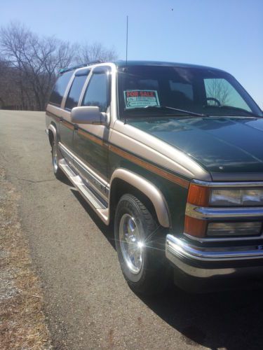 1996 CHEVROLET SUBURBAN ANNEHEIM INDUSTRIES SPECIAL EDITION 5.7 V8 VORTEC POWER PLANT AUTOMATIC 4X4 TRANSMISSION ONLY 102,070 MILES CUSTOM EXTERIOR WITH GRAPHIC DESIGNS, RUNNING BOARDS, Barn Style Rear Doors, Front Fog Lights, Towing Package, Rear Roof Mounted Spoiler, ALL SEASON DEEP TREAD TIRES, New Alloy Spare Tire and Rim, ROOF LUGGAGE RACKS Custom Interior, Leather Upholstery, 7 Passenger seating, 4 High Back Bucket seats Kenwood Stereo System with USB PORT, CD Player, Equalizer, Front & Rear controlled Air Conditioning & Heat, Hidden Thermo Cooler Ice Chest MORE FEATURES 3-Point Rear Seat Belts, AM/FM Stereo, Accent Stripes, Adjustable Steering Wheel, Air Bag, Air conditioning, Anti-lock brakes, Body Side Moldings, Break-Resistant Glass, Center Arm Rest, Chrome Bumper, Chrome Wheels, Climate Control, Coolant Temp. Gauge, Courtesy Lights, Cruise control, Cup Holders, Daytime Running Lights, Digital Clock, Driver airbag, Dual Power Mirrors, Fender Flares, Floor Mats, Fog Lamps, Head Protection System (Airbags), Interior Hood Release, Interval Wipers, Keyless Entry, Map Light, Metallic Paint, Overhead Console, Passenger airbag, Passive Restraint System, Power Brakes, Power Lumbar Support, Power Mirrors, Power Steering, Power locks, Power seats, Power windows, Rear Defroster, Security System, Tachometer, Third Brake Light, Third Row Seat, Tilt Steering Column, Tinted Glass, Towing Package, Trip Odometer, Vanity Mirror(s) LOADED !!!!!!! ![]() Powered by eBay Turbo Lister The free listing tool. List your items fast and easy and manage your active items. |
