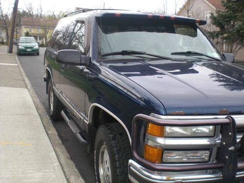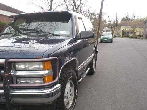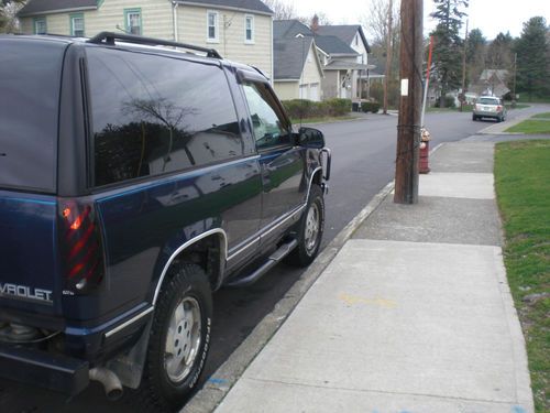 For sale 1995 Chevy Tahoe 4X4 2 door 188,000 5.7L this is a very reliable truck and has been maintained professionally. He has always fired right up whether it was below zero or over a hundred degrees out. this truck has power windows power locks and power mirrors. A new transmission was installed about two years ago as were new transmission lines. Fuel tank and sending unit replaced less than 1 year ago. Both front and rear differentials serviced recently. I did a tune up on him in January new plugs wires cap rotor fuel filter. The tires are BF GoodRich TKO, these are the more aggressive version, with 75% tread left on them. Also new brakes front and rear as well as brake lines calipers hoses. The front rotors are slotted. I had a custom rear bumper built for him with tow receiver. There is a cold air intake K and N and a set of shorty headers installed. For whoever buys him I will make sure the oil is changed. Make a resonable offer and I will do my best to work with you. Call 845-522-4220 or 845-534-1048