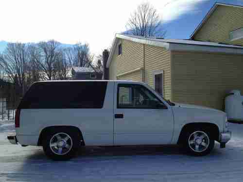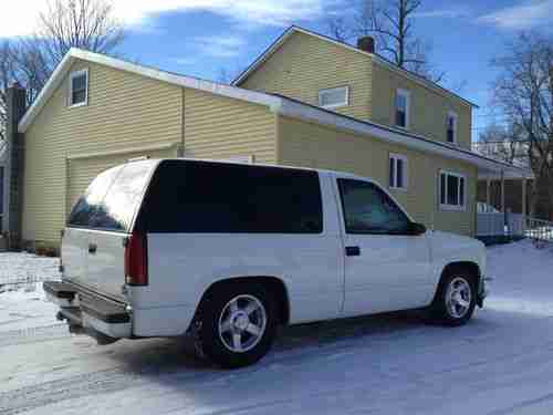 Up for sale is my 96' 2dr 2wd Yukon SLT that I bought about a year ago out of California. I shipped it up to NY and started to clean it up and make some minor changes. I have all of the receipts from what I have done to the Yukon and at this point with another SUV and two other trucks under my name, I don't want or have the room for this anymore. It currently resides in my garage and sits on a battery tender. The only problem I have had with it is the fuel pump went out and I had to replace it. It runs and drives well especially for being lowered, stops well and start up every time without a problem. It has never been driven in snow or salt, I just pulled it out of the garage for the pictures and then rolled it back in. Here is a list of what I have done to it in the time that I have owned it and associated prices-
