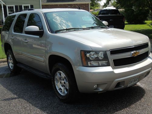 Here you go folks; a real nice 2007 Chevy Tahoe LT 4x4 Flex fuel, fully loaded and ready to go. This Tahoe runs great and is in excellent condition. The original color is Silver Birch, with tan leather seating, which includes the 3rd row seating. All leather is in great condition as pictured. All the creature comforts are there as well; DVD System, XM radio (still activated), power everything and includes the tow package for you camper, bikes, or boats! Also have both sets of keys and owners manuals.