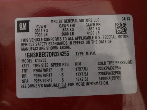 VIN (Vehicle Identification Number): 1GNSKBE07DR324255