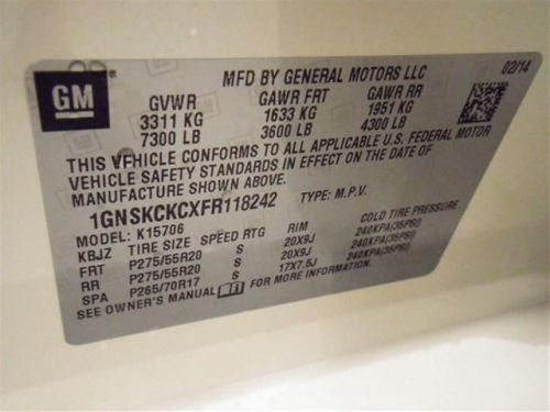 VIN (Vehicle Identification Number): 1GNSKCKCXFR118242