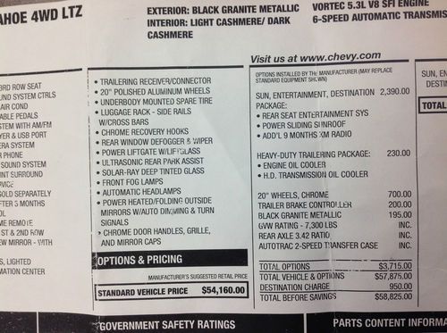 Chevrolet 2011 Tahoe Ltz 4wd Sport Utility 4 Door on 2040-cars
