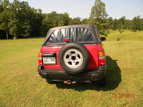 This is a 99 chevy tracker 4x4 automatic with working ac. All service has been done on this tracker on time. The timing belt has been replaced about 500 miles ago and should be ready another 100,000 miles. Everything works as it should including the cold AC. No rust on tracker with normal wear in the interior and exterior. Has 155,500 miles and going up as i drive it every so often. I do not have the back seat, when i purchased tracker it did not have one. I see seats on ebay very reasonable. Please bid with confidence and i reserve the right to sell locally. Any questions call 731-798-0055 or text 731-733-2409 I go to church with someone who hotshots for a living and may could help with shipping. Thanks